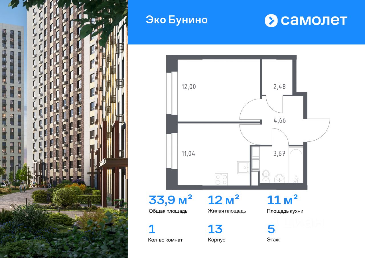 Строим кварталы для жизни с заботой о будущем. Предлагается 1-комнатная квартира комфорт-класса 33,85 кв.м в корпусе 13 на 5 этаже, в ЖК "Эко Бунино"