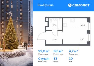 Строим кварталы для жизни с заботой о будущем. Предлагается квартира студия комфорт-класса 22,81 кв.м в корпусе 13 на 10 этаже, в ЖК "Эко Бунино"
