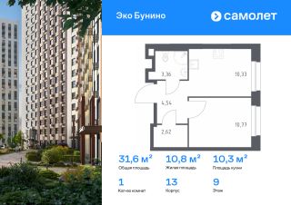 Строим кварталы для жизни с заботой о будущем. Предлагается 1-комнатная квартира комфорт-класса 31,62 кв.м в корпусе 13 на 9 этаже, в ЖК "Эко Бунино"