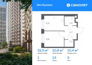 Строим кварталы для жизни с заботой о будущем. Предлагается 1-комнатная квартира комфорт-класса 32,51 кв.м в корпусе 13 на 5 этаже, в ЖК "Эко Бунино"