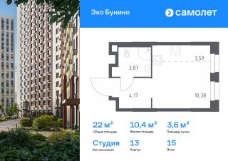 Строим кварталы для жизни с заботой о будущем. Предлагается квартира студия комфорт-класса 22,01 кв.м в корпусе 13 на 15 этаже, в ЖК "Эко Бунино"