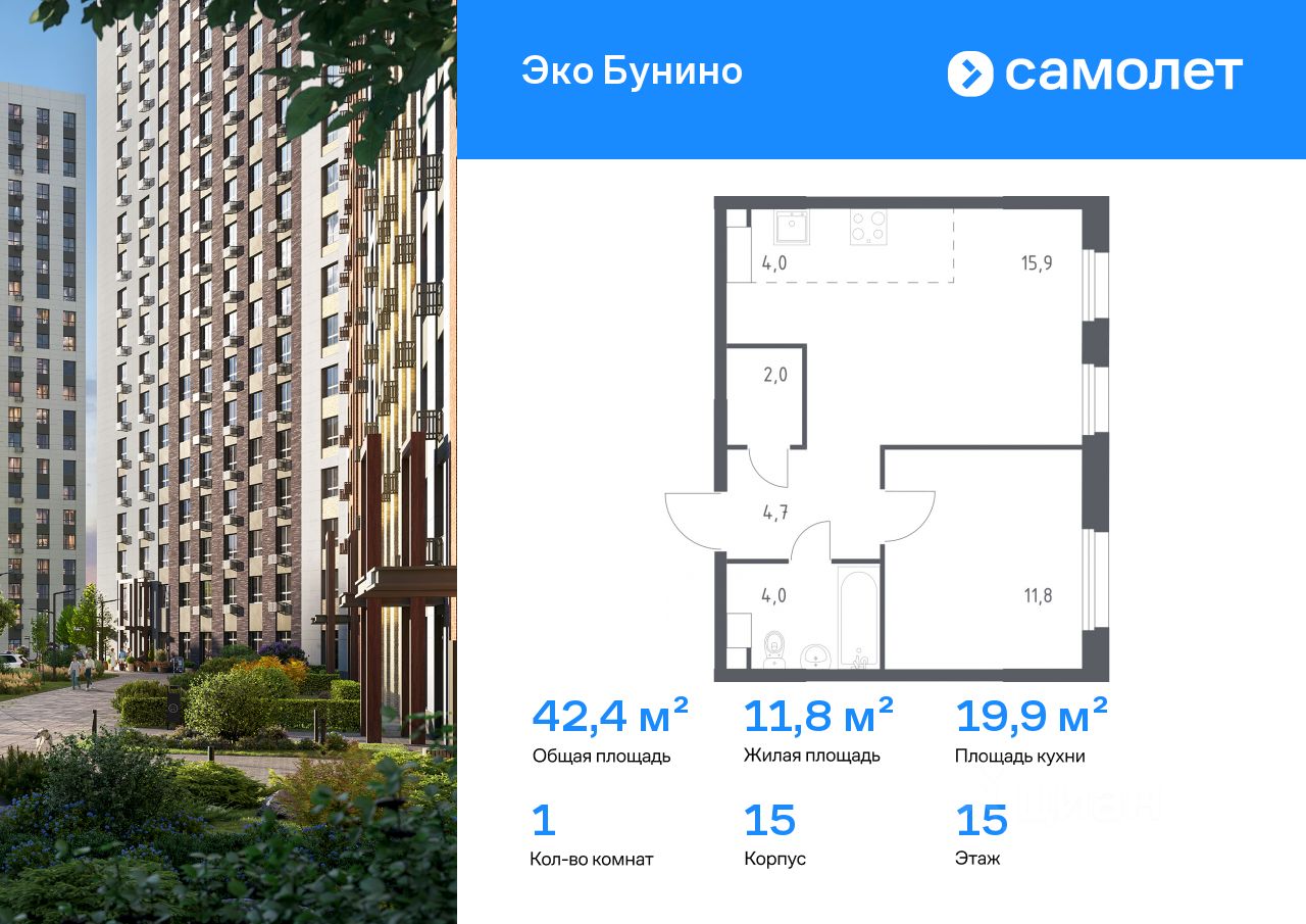 Строим кварталы для жизни с заботой о будущем. Предлагается 1-комнатная квартира комфорт-класса 42,4 кв.м в корпусе 15 на 15 этаже, в ЖК "Эко Бунино"