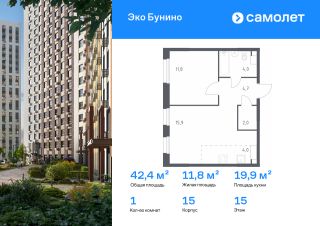 Строим кварталы для жизни с заботой о будущем. Предлагается 1-комнатная квартира комфорт-класса 42,4 кв.м в корпусе 15 на 15 этаже, в ЖК "Эко Бунино"