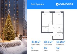 Строим кварталы для жизни с заботой о будущем. Предлагается 1-комнатная квартира комфорт-класса 41,8 кв.м в корпусе 15 на 12 этаже, в ЖК "Эко Бунино"