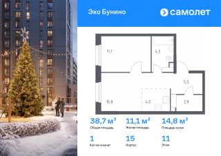 Строим кварталы для жизни с заботой о будущем. Предлагается 1-комнатная квартира комфорт-класса 38,7 кв.м в корпусе 15 на 11 этаже, в ЖК "Эко Бунино"