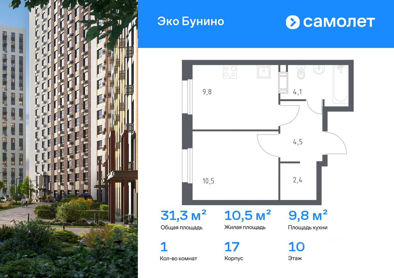 Строим кварталы для жизни с заботой о будущем. Предлагается 1-комнатная квартира комфорт-класса 31,3 кв.м в корпусе 17 на 10 этаже, в ЖК "Эко Бунино"