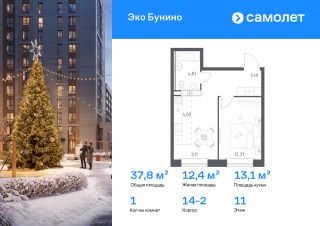 Строим кварталы для жизни с заботой о будущем. Предлагается 1-комнатная квартира комфорт-класса 37,81 кв.м в корпусе 14-2 на 11 этаже, в ЖК "Эко Бунино"