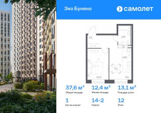 Строим кварталы для жизни с заботой о будущем. Предлагается 1-комнатная квартира комфорт-класса 37,55 кв.м в корпусе 14-2 на 12 этаже, в ЖК "Эко Бунино"