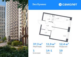 Строим кварталы для жизни с заботой о будущем. Предлагается 1-комнатная квартира комфорт-класса 37,3 кв.м в корпусе 14-1 на 19 этаже, в ЖК "Эко Бунино"