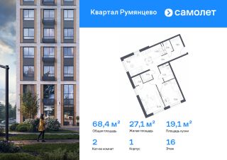 Строим кварталы для жизни с заботой о будущем. Предлагается 2-комнатная квартира комфорт-класса 68,41 кв.м в корпусе 1 на 16 этаже, в ЖК "Квартал Румянцево"