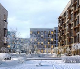 Жилой комплекс в окружении лесопарков и рядом с рекой. До станции МЦД-4 "Санино" можно дойти пешком за 7 минут, а на территории проекта появится транспортно-пересадочный узел с торговым центром. Для жителей построят школу, 2 детсада, в одном из которых будут развивающие кабинеты-трансформеры.