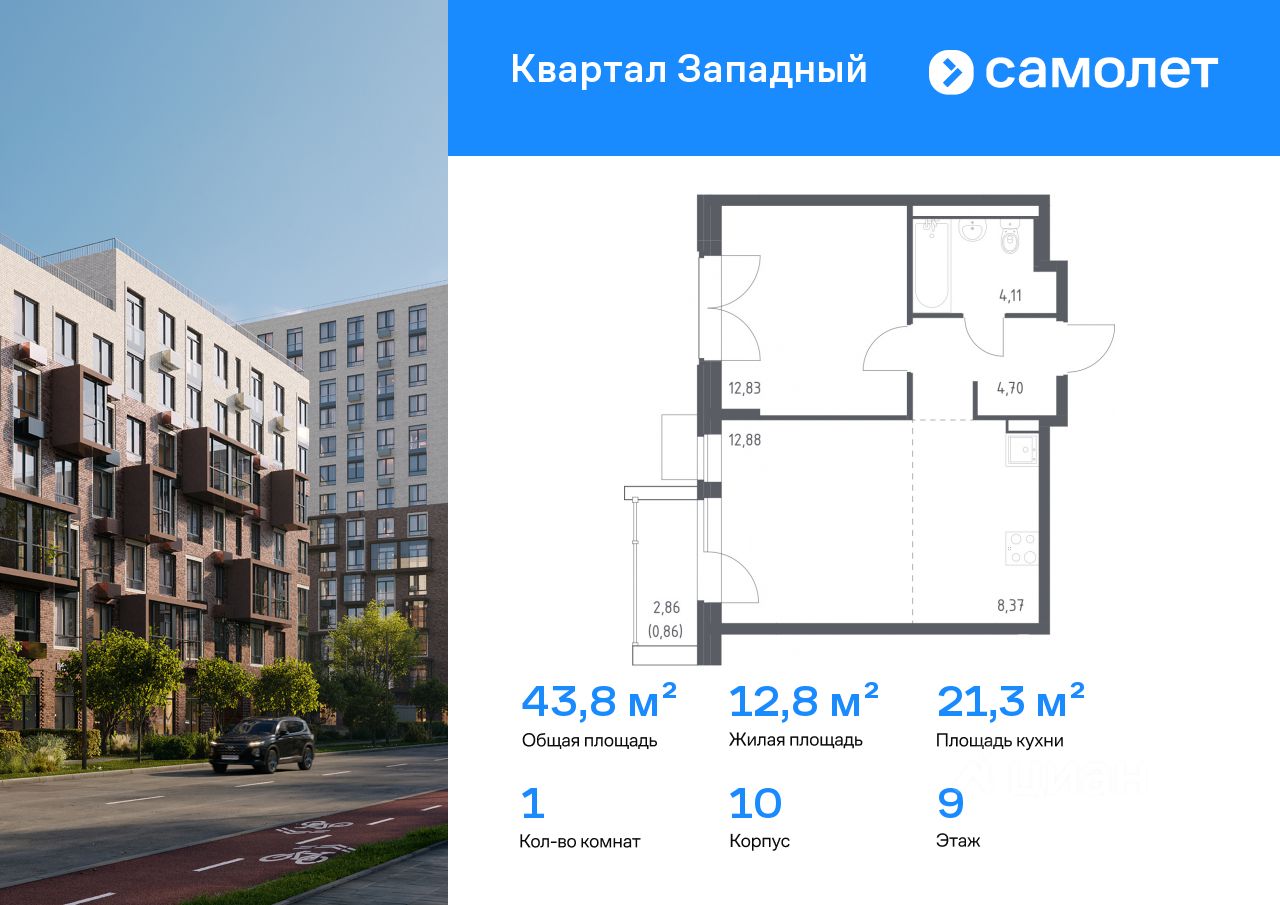 Строим кварталы для жизни с заботой о будущем. Предлагается 1-комнатная квартира комфорт-класса 43,75 кв.м в корпусе 10 на 9 этаже, в ЖК "Квартал Западный"