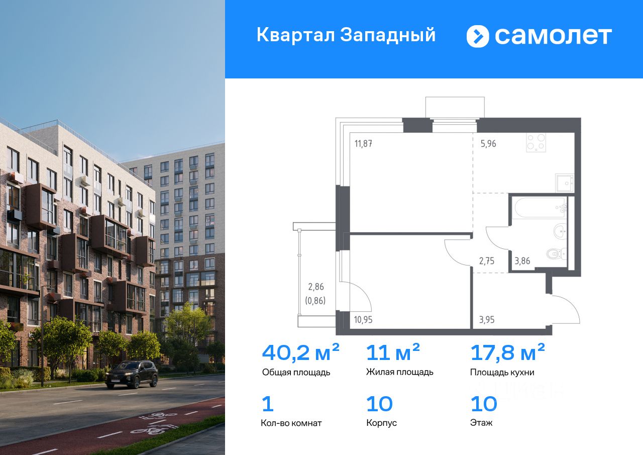 Строим кварталы для жизни с заботой о будущем. Предлагается 1-комнатная квартира комфорт-класса 40,2 кв.м в корпусе 10 на 10 этаже, в ЖК "Квартал Западный"