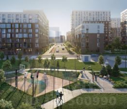 Жилой комплекс в окружении лесопарков и рядом с рекой. До станции МЦД-4 "Санино" можно дойти пешком за 7 минут, а на территории проекта появится транспортно-пересадочный узел с торговым центром. Для жителей построят школу, 2 детсада, в одном из которых будут развивающие кабинеты-трансформеры.