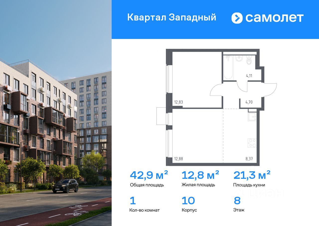 Строим кварталы для жизни с заботой о будущем. Предлагается 1-комнатная квартира комфорт-класса 42,89 кв.м в корпусе 10 на 8 этаже, в ЖК "Квартал Западный"