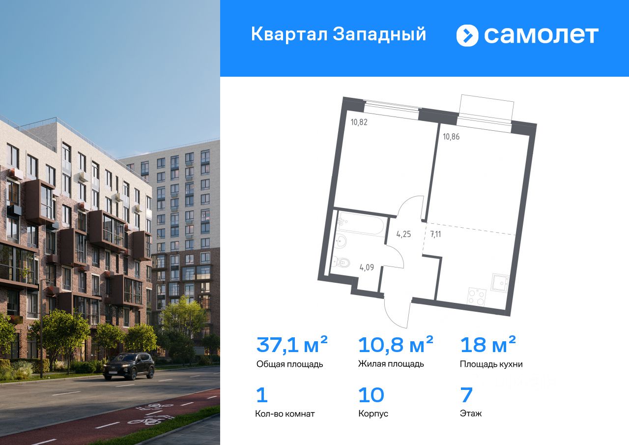 Строим кварталы для жизни с заботой о будущем. Предлагается 1-комнатная квартира комфорт-класса 37,13 кв.м в корпусе 10 на 7 этаже, в ЖК "Квартал Западный"