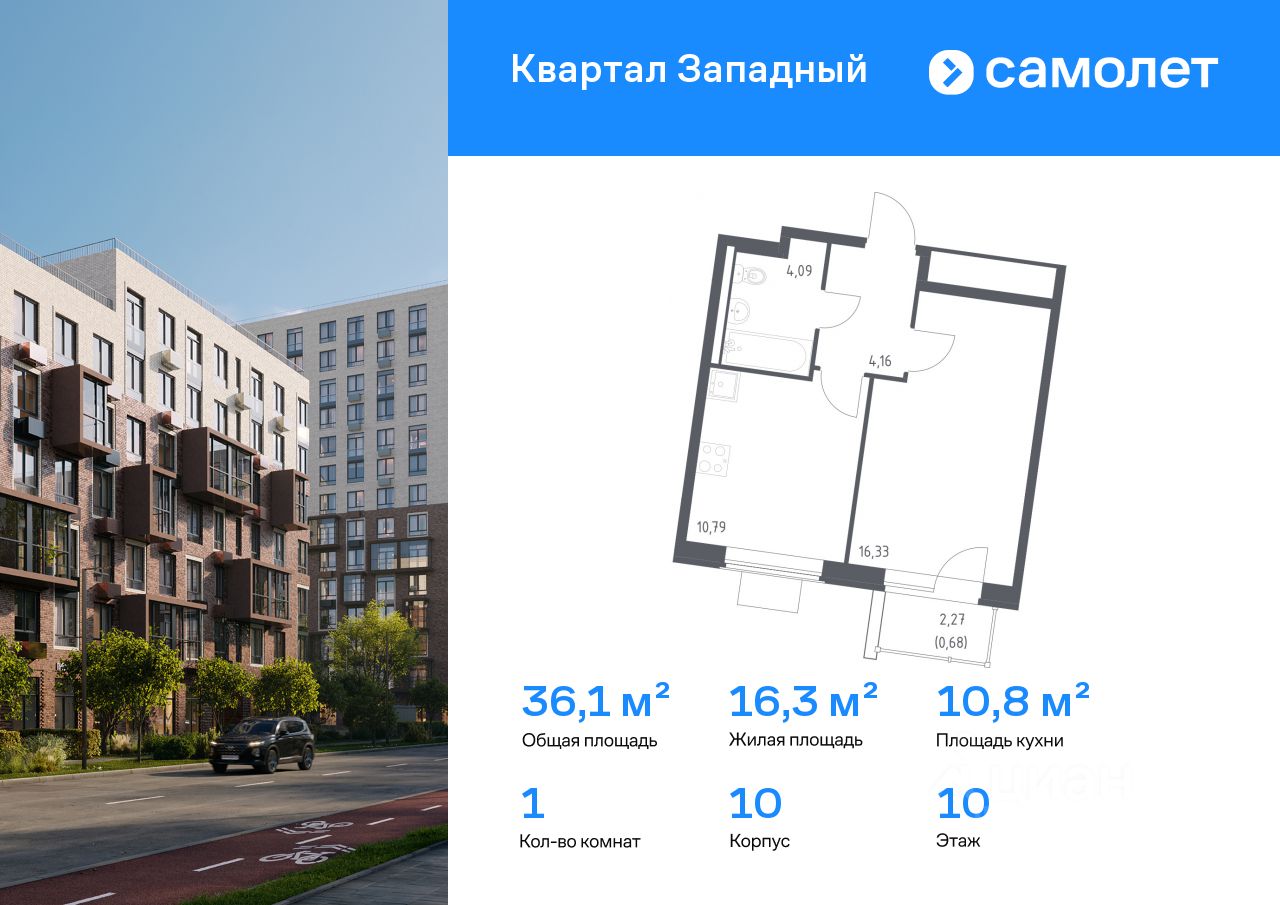 Строим кварталы для жизни с заботой о будущем. Предлагается 1-комнатная квартира комфорт-класса 36,05 кв.м в корпусе 10 на 10 этаже, в ЖК "Квартал Западный"