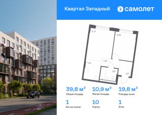 Строим кварталы для жизни с заботой о будущем. Предлагается 1-комнатная квартира комфорт-класса 39,79 кв.м в корпусе 10 на 1 этаже, в ЖК "Квартал Западный"