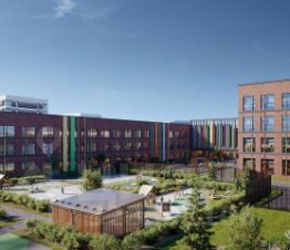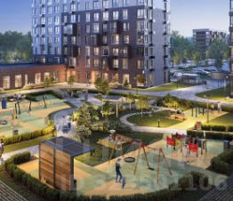 Жилой комплекс в окружении лесопарков и рядом с рекой. До станции МЦД-4 "Санино" можно дойти пешком за 7 минут, а на территории проекта появится транспортно-пересадочный узел с торговым центром. Для жителей построят школу, 2 детсада, в одном из которых будут развивающие кабинеты-трансформеры.