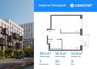 Строим кварталы для жизни с заботой о будущем. Предлагается 1-комнатная квартира комфорт-класса 36,05 кв.м в корпусе 10 на 3 этаже, в ЖК "Квартал Западный"