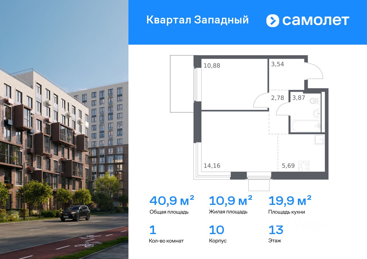 Строим кварталы для жизни с заботой о будущем. Предлагается 1-комнатная квартира комфорт-класса 40,92 кв.м в корпусе 10 на 13 этаже, в ЖК "Квартал Западный"