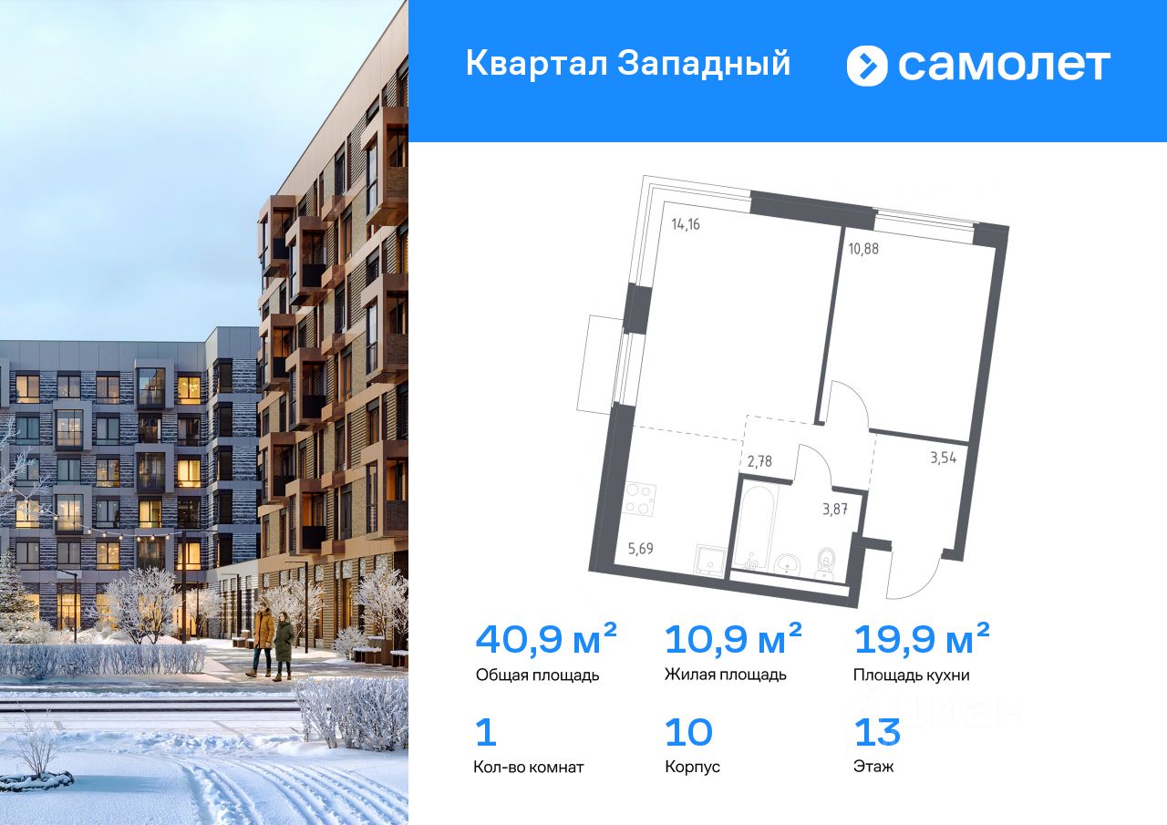 Строим кварталы для жизни с заботой о будущем. Предлагается 1-комнатная квартира комфорт-класса 40,92 кв.м в корпусе 10 на 13 этаже, в ЖК "Квартал Западный"