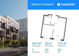 Строим кварталы для жизни с заботой о будущем. Предлагается 1-комнатная квартира комфорт-класса 34,68 кв.м в корпусе 10 на 12 этаже, в ЖК "Квартал Западный"