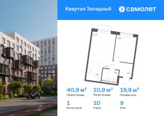 Строим кварталы для жизни с заботой о будущем. Предлагается 1-комнатная квартира комфорт-класса 40,9 кв.м в корпусе 10 на 9 этаже, в ЖК "Квартал Западный"