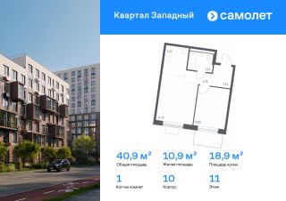 Строим кварталы для жизни с заботой о будущем. Предлагается 1-комнатная квартира комфорт-класса 40,92 кв.м в корпусе 10 на 11 этаже, в ЖК "Квартал Западный"
