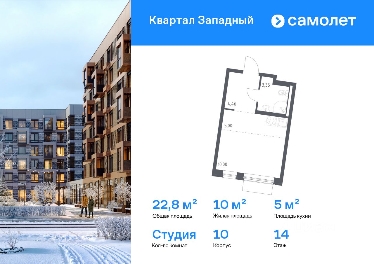 Строим кварталы для жизни с заботой о будущем. Предлагается квартира студия комфорт-класса 22,81 кв.м в корпусе 10 на 14 этаже, в ЖК "Квартал Западный"