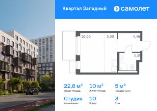 Строим кварталы для жизни с заботой о будущем. Предлагается квартира студия комфорт-класса 22,81 кв.м в корпусе 10 на 3 этаже, в ЖК "Квартал Западный"