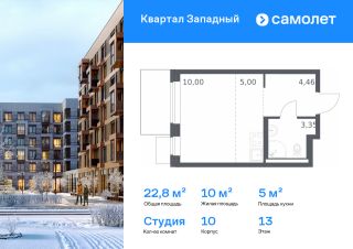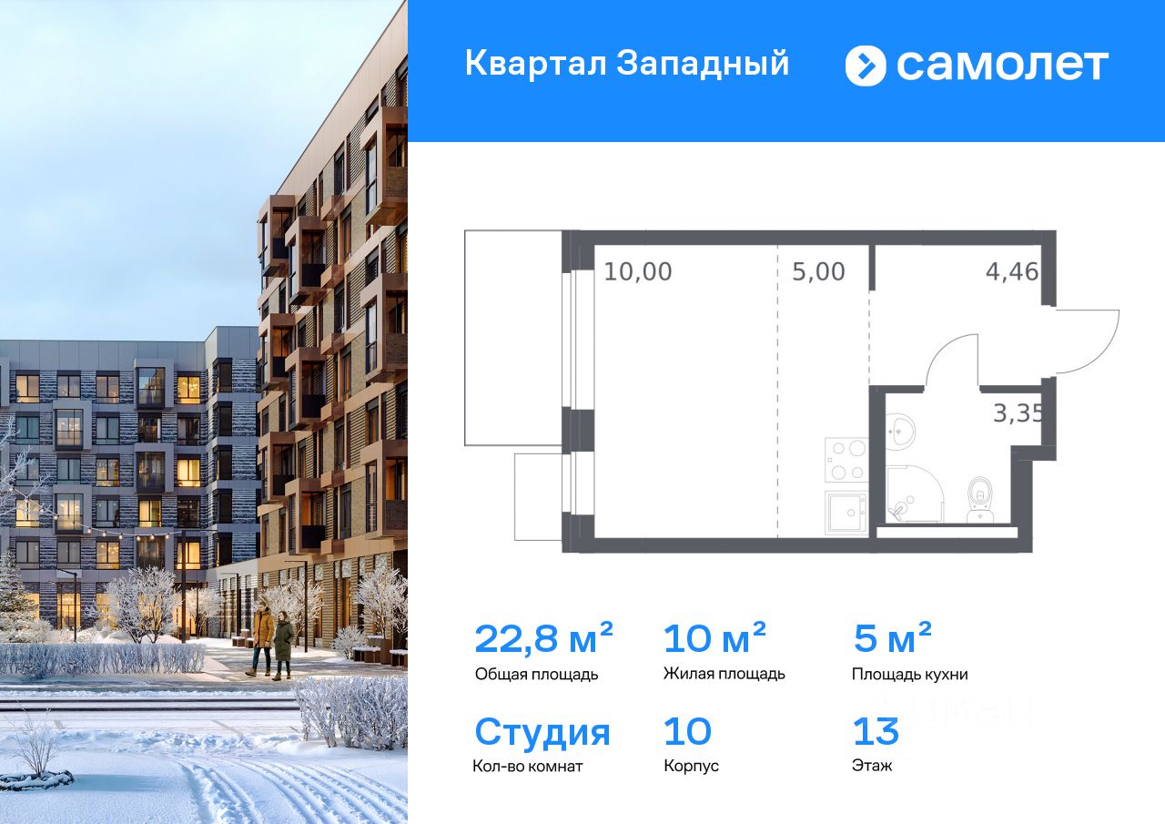 Строим кварталы для жизни с заботой о будущем. Предлагается квартира студия комфорт-класса 22,81 кв.м в корпусе 10 на 13 этаже, в ЖК "Квартал Западный"