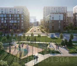Жилой комплекс в окружении лесопарков и рядом с рекой. До станции МЦД-4 "Санино" можно дойти пешком за 7 минут, а на территории проекта появится транспортно-пересадочный узел с торговым центром. Для жителей построят школу, 2 детсада, в одном из которых будут развивающие кабинеты-трансформеры.