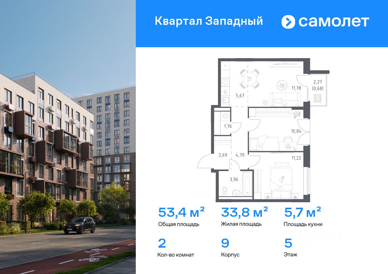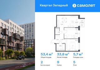 Строим кварталы для жизни с заботой о будущем. Предлагается 2-комнатная квартира комфорт-класса 53,39 кв.м в корпусе 9 на 5 этаже, в ЖК "Квартал Западный"