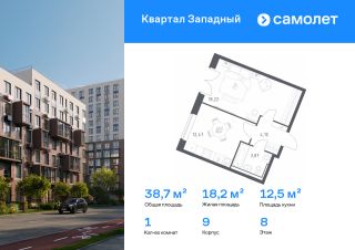 Строим кварталы для жизни с заботой о будущем. Предлагается 1-комнатная квартира комфорт-класса 38,66 кв.м в корпусе 9 на 8 этаже, в ЖК "Квартал Западный"