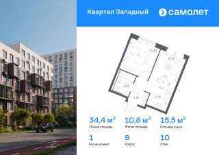Строим кварталы для жизни с заботой о будущем. Предлагается 1-комнатная квартира комфорт-класса 34,39 кв.м в корпусе 9 на 10 этаже, в ЖК "Квартал Западный"