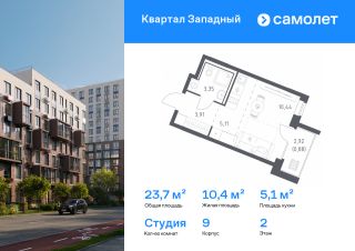 Строим кварталы для жизни с заботой о будущем. Предлагается квартира студия комфорт-класса 23,69 кв.м в корпусе 9 на 2 этаже, в ЖК "Квартал Западный"
