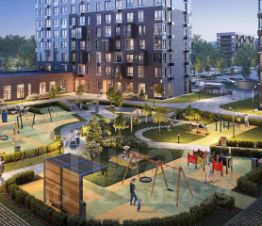 Дворы — тихое зеленое пространство без машин. В проекте появится собственный ландшафтный парк с благоустроенной набережной и центральная площадь, на которой будут проводиться различные мероприятия.
