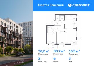 Строим кварталы для жизни с заботой о будущем. Предлагается 3-комнатная квартира комфорт-класса 76,19 кв.м в корпусе 6 на 3 этаже, в ЖК "Квартал Западный"