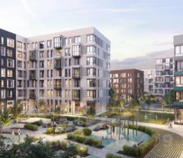 Жилой комплекс в окружении лесопарков и рядом с рекой. До станции МЦД-4 "Санино" можно дойти пешком за 7 минут, а на территории проекта появится транспортно-пересадочный узел с торговым центром. Для жителей построят школу, 2 детсада, в одном из которых будут развивающие кабинеты-трансформеры.