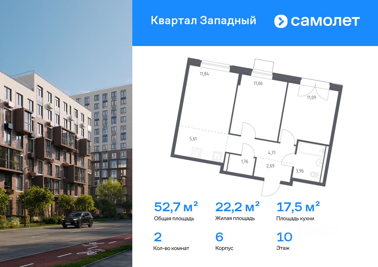 Строим кварталы для жизни с заботой о будущем. Предлагается 2-комнатная квартира комфорт-класса 52,72 кв.м в корпусе 6 на 10 этаже, в ЖК "Квартал Западный"