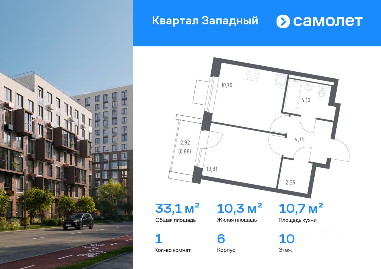 Строим кварталы для жизни с заботой о будущем. Предлагается 1-комнатная квартира комфорт-класса 33,13 кв.м в корпусе 6 на 10 этаже, в ЖК "Квартал Западный"
