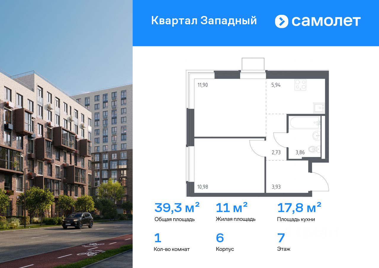 Строим кварталы для жизни с заботой о будущем. Предлагается 1-комнатная квартира комфорт-класса 39,34 кв.м в корпусе 6 на 7 этаже, в ЖК "Квартал Западный"