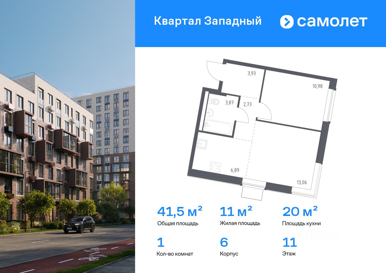 Строим кварталы для жизни с заботой о будущем. Предлагается 1-комнатная квартира комфорт-класса 41,46 кв.м в корпусе 6 на 11 этаже, в ЖК "Квартал Западный"