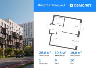 Строим кварталы для жизни с заботой о будущем. Предлагается 1-комнатная квартира комфорт-класса 35,77 кв.м в корпусе 6 на 10 этаже, в ЖК "Квартал Западный"