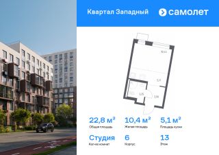 Строим кварталы для жизни с заботой о будущем. Предлагается квартира студия комфорт-класса 22,8 кв.м в корпусе 6 на 13 этаже, в ЖК "Квартал Западный"