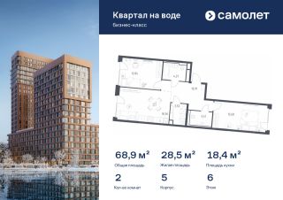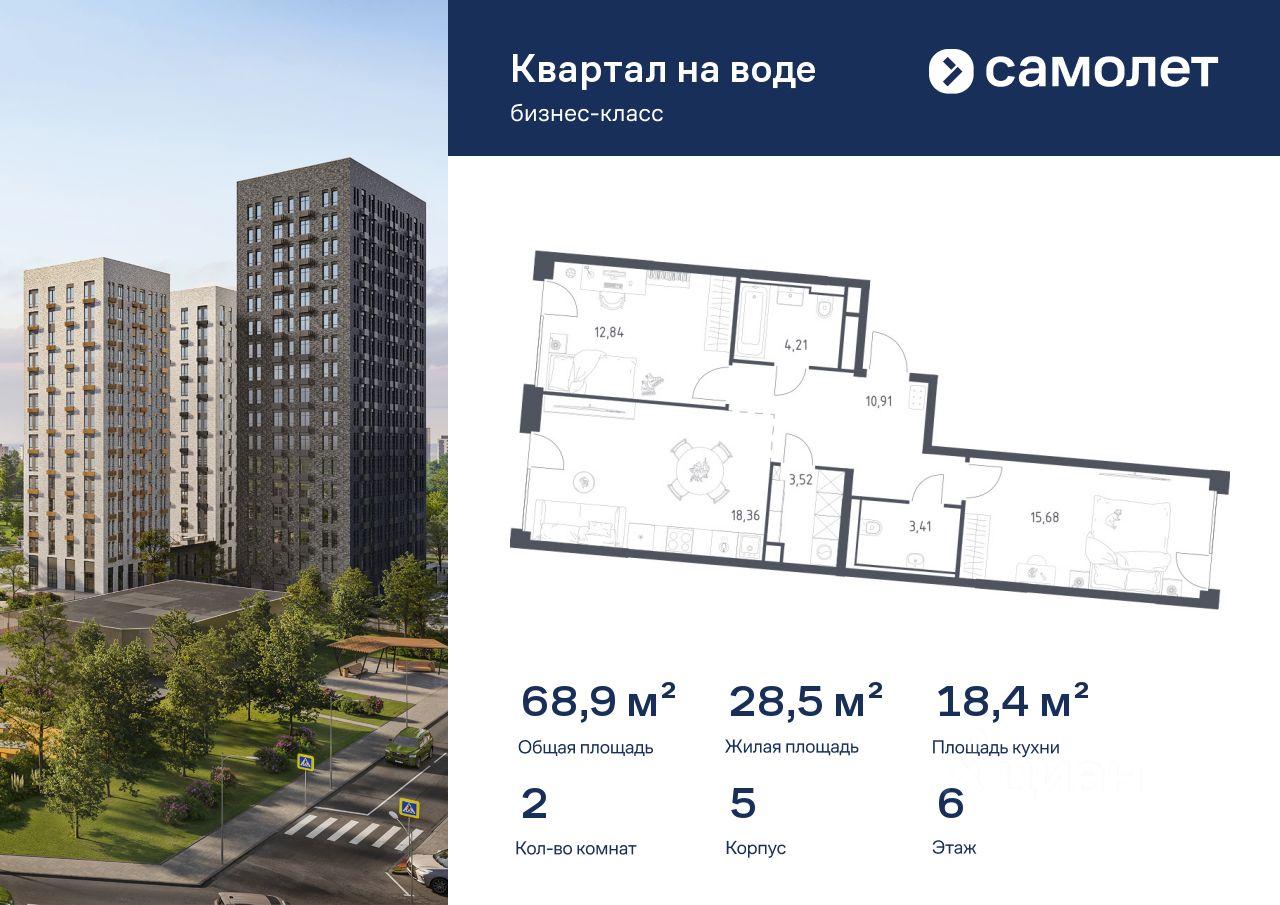 Строим кварталы для жизни с заботой о будущем. Предлагается 2-комнатная квартира бизнес-класса 68,93 кв.м в корпусе 5 на 6 этаже, в ЖК "Квартал на воде"
