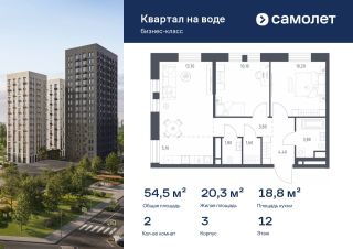 Строим кварталы для жизни с заботой о будущем. Предлагается 2-комнатная квартира бизнес-класса 54,5 кв.м в корпусе 3 на 12 этаже, в ЖК "Квартал на воде"