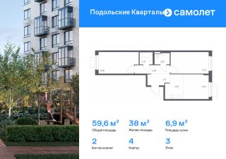 Строим кварталы для жизни с заботой о будущем. Предлагается 2-комнатная квартира комфорт-класса 59,64 кв.м в корпусе 4 на 3 этаже, в ЖК "Подольские Кварталы"