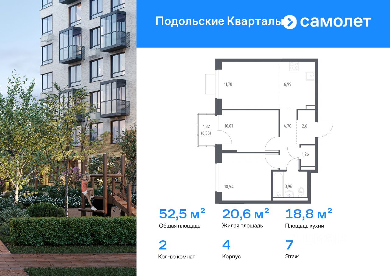 Строим кварталы для жизни с заботой о будущем. Предлагается 2-комнатная квартира комфорт-класса 52,46 кв.м в корпусе 4 на 7 этаже, в ЖК "Подольские Кварталы"